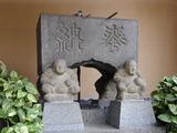 変わってこちらは、菊名神社の境内にある「がまんさま」です。手水鉢を支える鬼のことを指しています。長い年月、苦難な事も同じ仕事にも飽きることなくじっと忍耐して手水鉢を守っていることから、人の進むべき道を指していると言われています。街の古い文化財の1つだそうです。 |  |