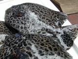 中華街市場通りにあるお魚屋さんで見つけた「石垣ダイ」。100g200円ナリ。石垣島より南方に生息している魚です。いや〜黒っぽいヒョウ柄に見えません?(コギャル魚だ!?)脂も多く刺身や蒸し料理などにして食べるそうです。 |  |
