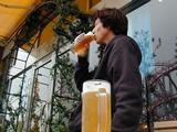 僕も早速ゴクゴクと・・・。バナナビールはほんのり口の中にバナナの香りが広がるカクテルのようなビールです。口当たりが良いのでついつい飲んでしまいますが後から効いてきますよ。この他にも黒(スタウト)ビール・白(ヴァイツェン)ビールを含め8種類のビールが楽しめます。 |