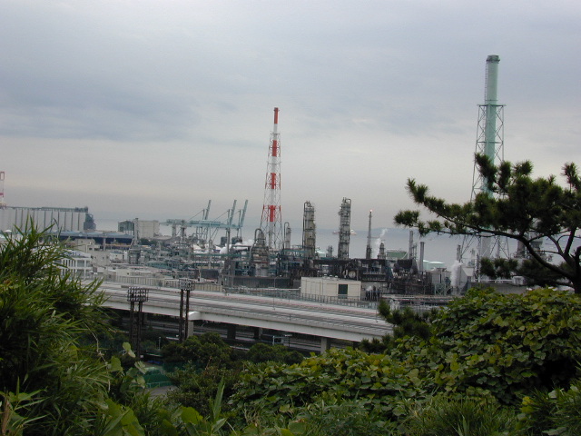 三渓園で一番お行きに入りの場所!「松風閣」という展望台です!ここからは園内が見られるのではなく、外を眺めることになるんです。園内と違って無機質的な煙突やコンビナート、首都高が見えますね〜。何となくここは外と内を結ぶゲートのような感じがするんです。好きですね〜。 |