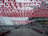 | 紅白ストライプの旗も作品!!この先が横浜トリエンナーレの会場となります!!いろーんなおもしろ作品があるんですよ〜!! |