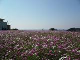 | 最後は横須賀長井海の手公園ソレイユの丘に来ました!!入り口は行って直ぐ、10万本のコスモスが咲き誇っていますよ〜!!コスモスの先には海も見えますね♪ |